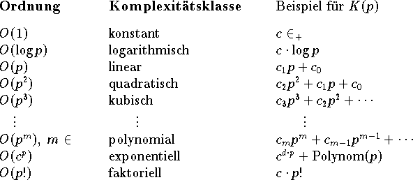 Algorithmen mit Komplexität bestimmter Ordnung werden in asymptotischen Komplexitätsklassen zusammengefaßt.
