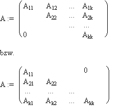 sind obere bzw. untere Block-Dreiecksmatrizen. Die Determinante einer solchen Matrix ist durch das Produkt