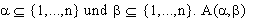 Untermatrix von A, wobei die Menge alpha die Zeilen und die Menge beta