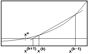 Beim Newton-Verfahren muß die erste Ableitung f' explizit bekannt sein. In vielen praktischen Fällen ist die erste Ableitung aber nicht explizit verfügbar oder nur sehr aufwendig zu erhalten. In diesen Fällen kann man f'(x(k)) durch einen Differenzenquotienten approximieren: