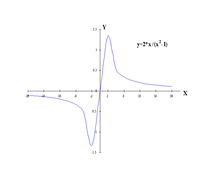 f3 : y = 2x/(x2 -1) D = R\{-1,1}={x aus R : x <> ± 1}