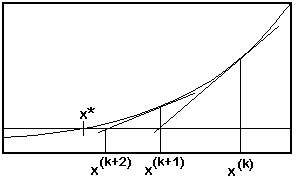 Die Nullstellen xk* dieser Funktion werden als Näherung für die Nullstelle x* der ursprünglichen nichtlinearen Funktion verwendet.